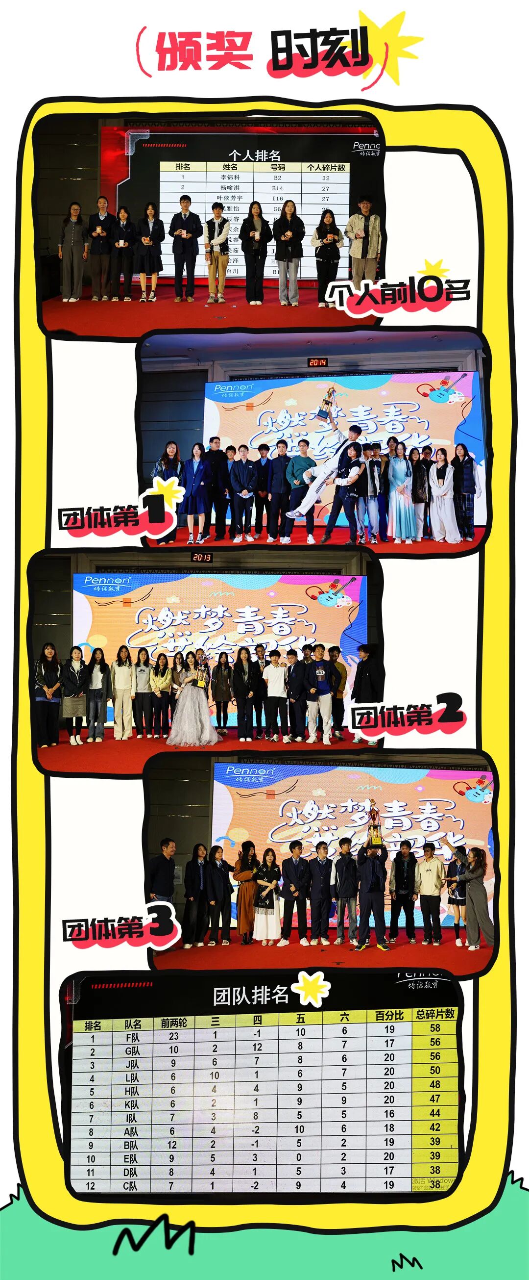 团队榜冠亚季军荣耀加冕,专属奖杯金光闪闪。个人榜前10名解锁盲盒抽奖,拆开全是惊喜礼品,手气爆棚的同学直接笑到合不拢嘴。在老师们的策划和安排下,本届英语大赛颁奖仪式搬进了艺术节晚会现场,全场欢呼尖叫,这排面谁看了不羡慕!