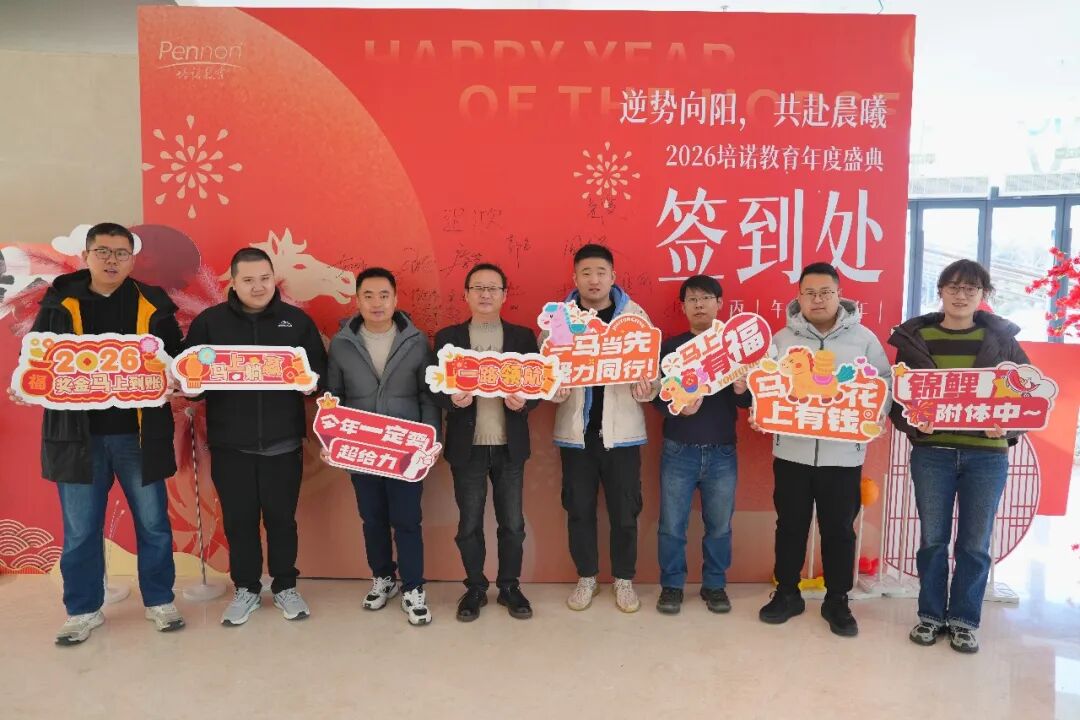 春归启新,喜乐相逢!年会签到现场暖意融融,欢乐与优雅并存,每一位培诺家人面带笑意,有序签到、亲切寒暄。