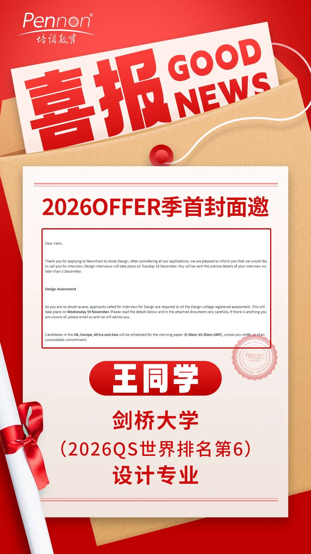 今年首封剑桥大学设计专业面试邀请正式落袋