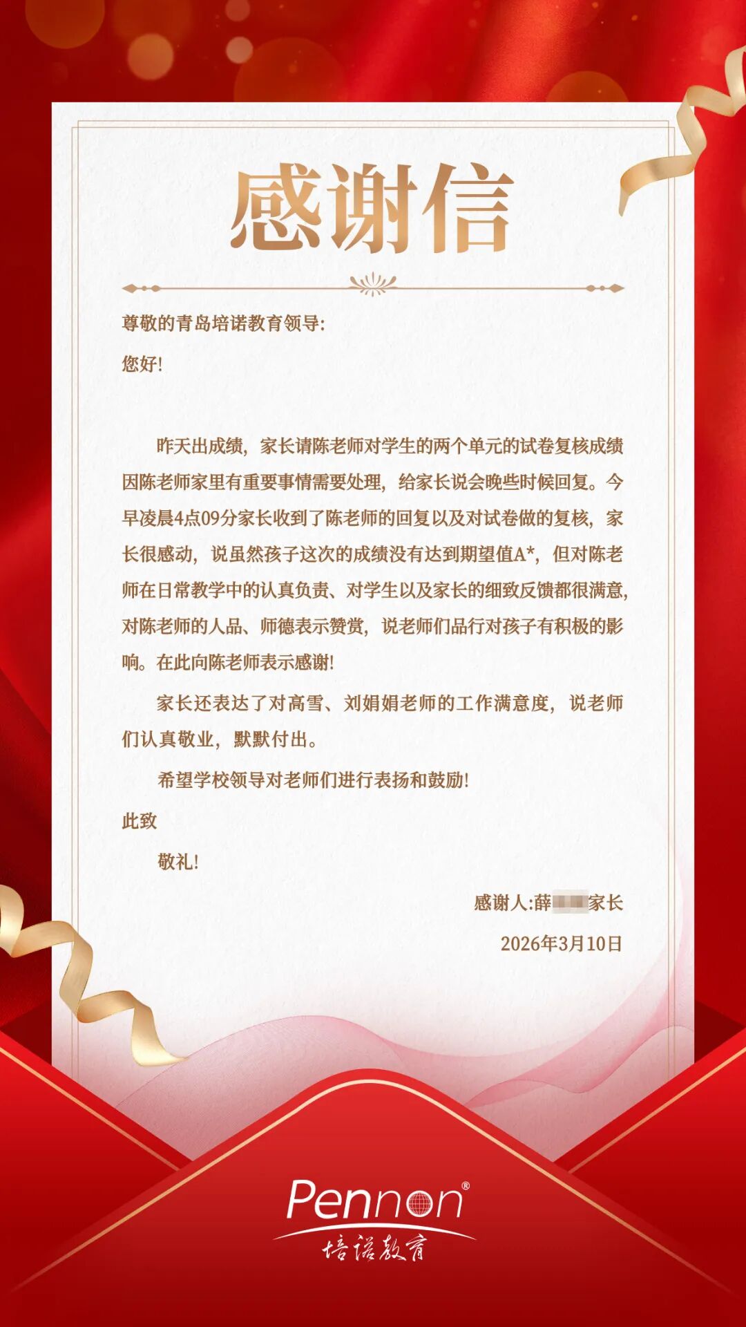最近,培诺教育的办公桌上多了几封特殊的来信。
