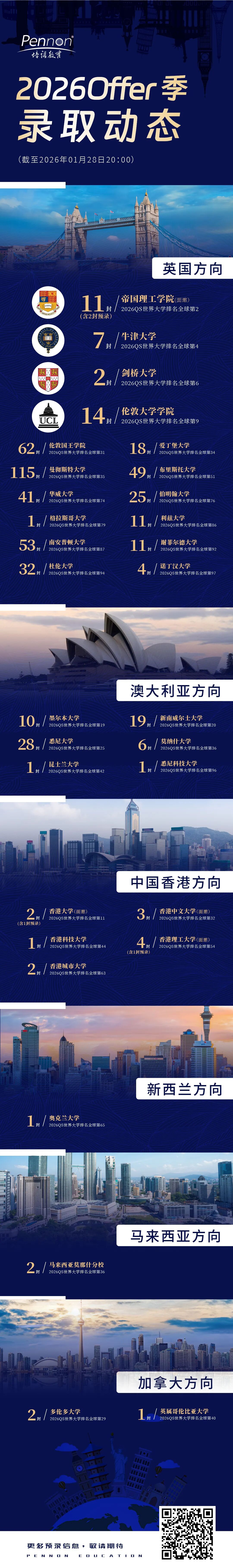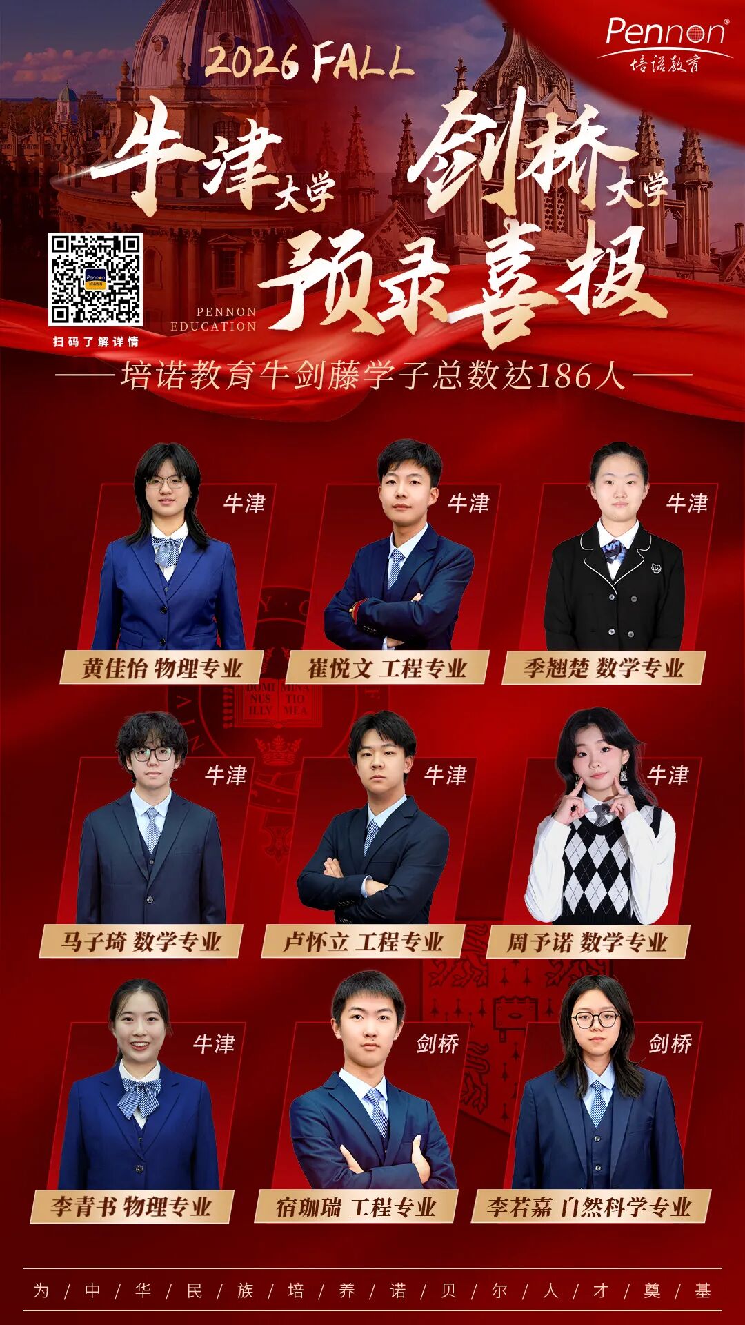 2026fall的录取捷报仍在持续更新,培诺学子的追梦故事还在继续。如果你也渴望叩开牛津、剑桥等世界顶尖大学的大门,如果你想在国际教育赛道上精准发力、从容冲刺,培诺教育将是你最坚实的伙伴。
